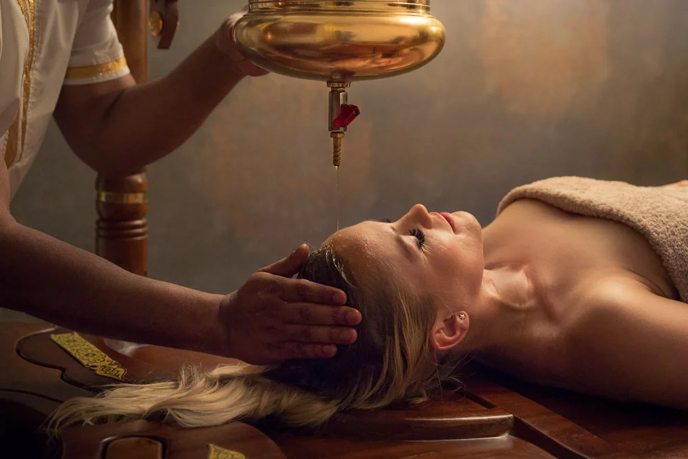 Jest najbardziej charakterystycznym zabiegiem ajurwedy, uważanym za jej najlepsze odkrycie. Polega na masażu czoła i ciągłym polewaniu strumieniem ciepłego oleju. Wpływa na uspokojenie i wyciszenie umysłu. Ten unikalny zabieg wspiera uzyskanie stanu głębokiego spokoju. Zabieg Shirodhara poprzedzony jest masażem głowy Shiro Abhyanga, który zwiększa pozytywny efekt zabiegu.